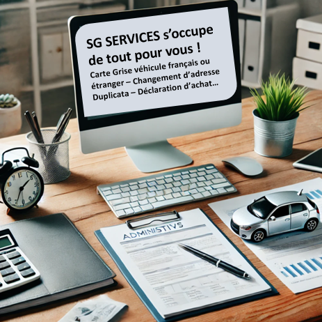 SG Services est une entreprise spĂ©cialisĂ©e dans les dĂ©marches administratives liĂ©es Ă l’automobile, notamment la gestion des cartes grises.